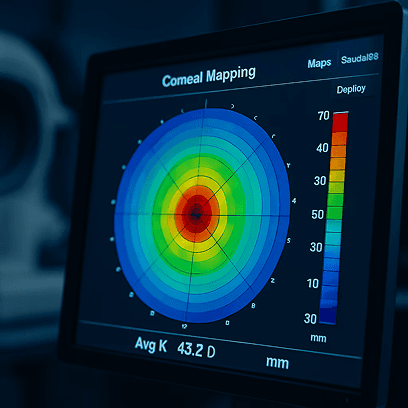 Correção de erros refrativos e condições especiais como ceratocone, irregularidades corneanas e necessidades estéticas.